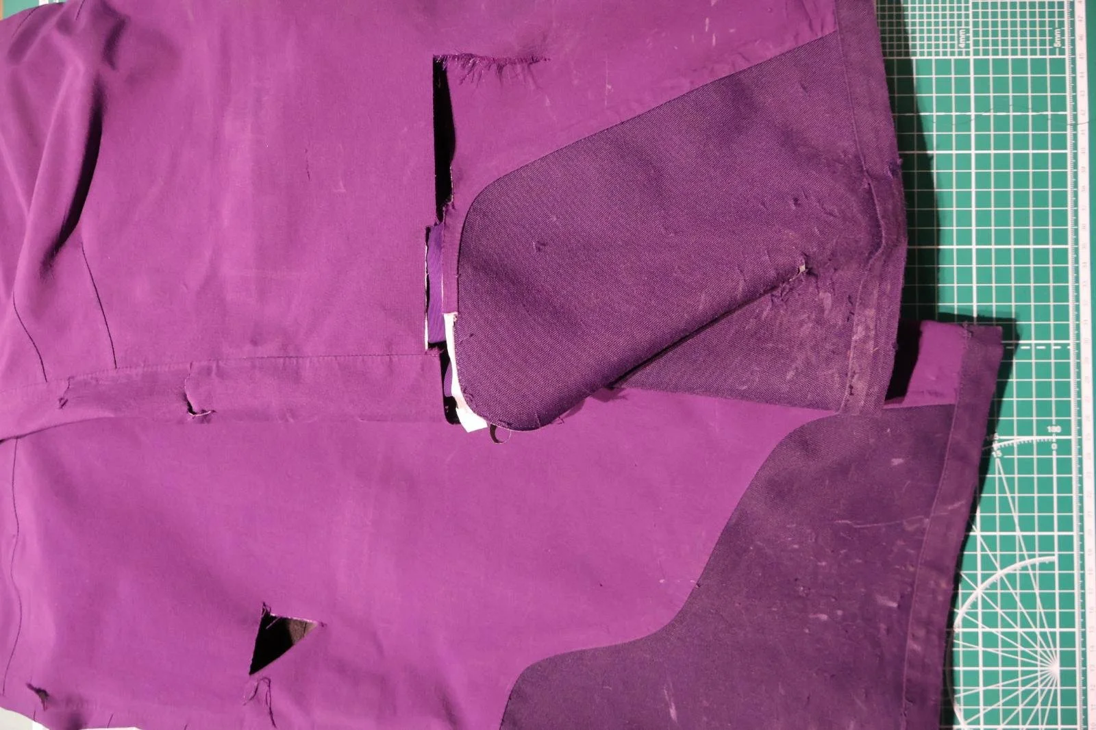 Sewn repairs and heat patches for tears, bust seams and areas of worn fabric.